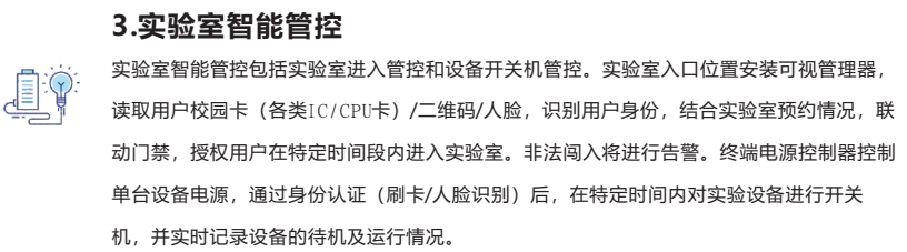 設備實(shí)際運行情況無(wú)法監管,且難以客觀(guān)準確收集信息,以機組填報為主使用手工統計,監控無(wú)法精準區分關(guān)機、待機、運行等數據,數據真實(shí)性核實(shí)困難。儀器的使用記錄,無(wú)法得到追溯和實(shí)時(shí)監控,導致設備使用效率低下。無(wú)法進(jìn)行有效的儀器及實(shí)驗技術(shù)人員的考核、儀器使用管理。